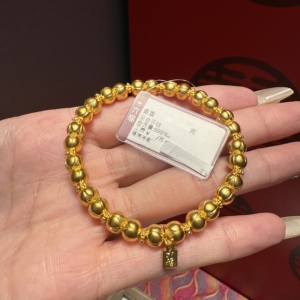 六福珠宝代购 足金999蹦迪珠碎金子黄金手链手串 新款专柜正品