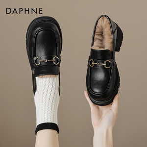 达芙妮粗跟乐福鞋英伦风加绒保暖