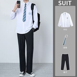 dk制服男全套衬衣套装班服长袖领带日系学生休闲百搭jk纯白衬衫男
