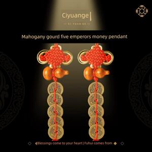 慈元阁定制五帝钱桃木葫芦铜钱挂件真品门对门压门槛入户门挂饰