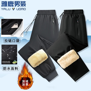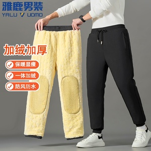 雅鹿男装冬季保暖棉裤男女款2025新款加绒卫裤保暖羊羔绒时尚束裤