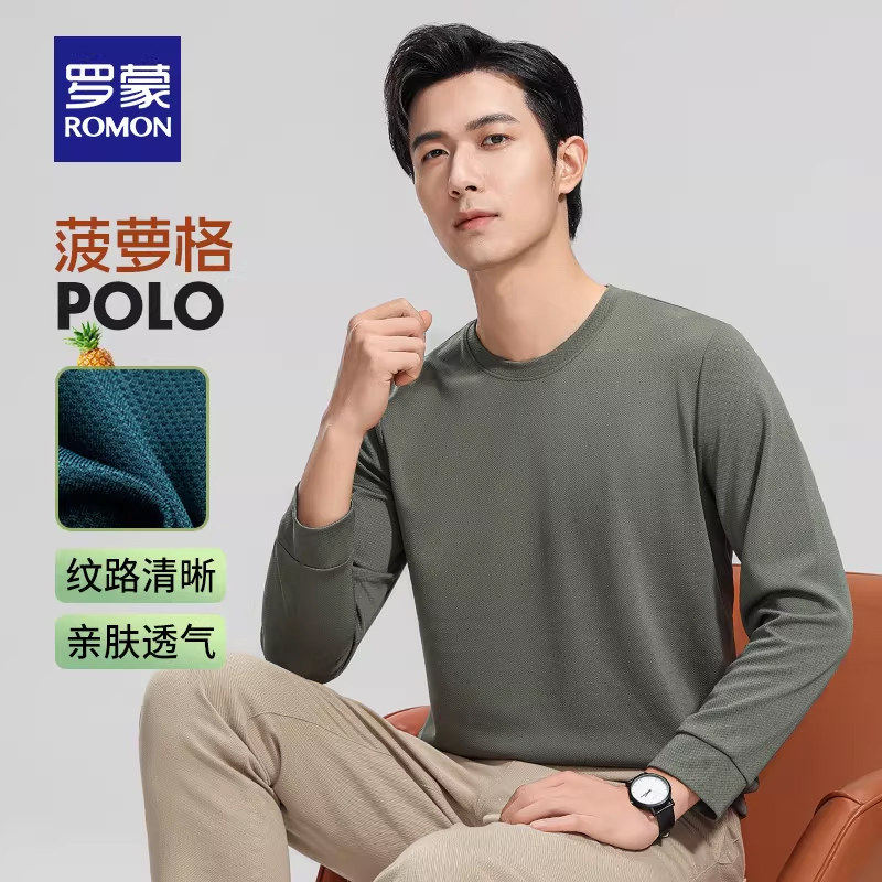 罗蒙男士商务休闲圆领长袖POLO衫