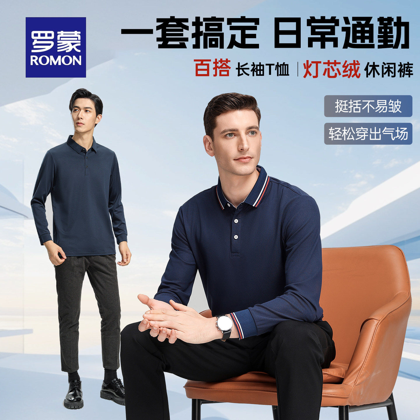 【可叠加消费券,到手38起裤子卫衣长袖polo合集】罗蒙男士长袖POLO衫+休闲裤,2026春季新款,简约时尚,舒适透气,适合日常穿搭,性价比超高!