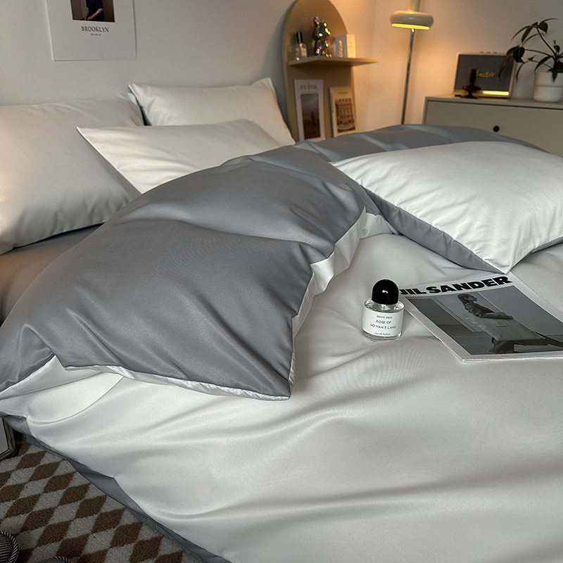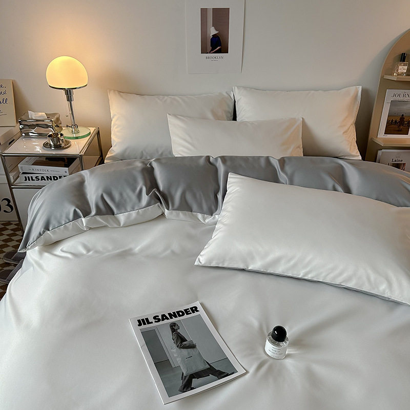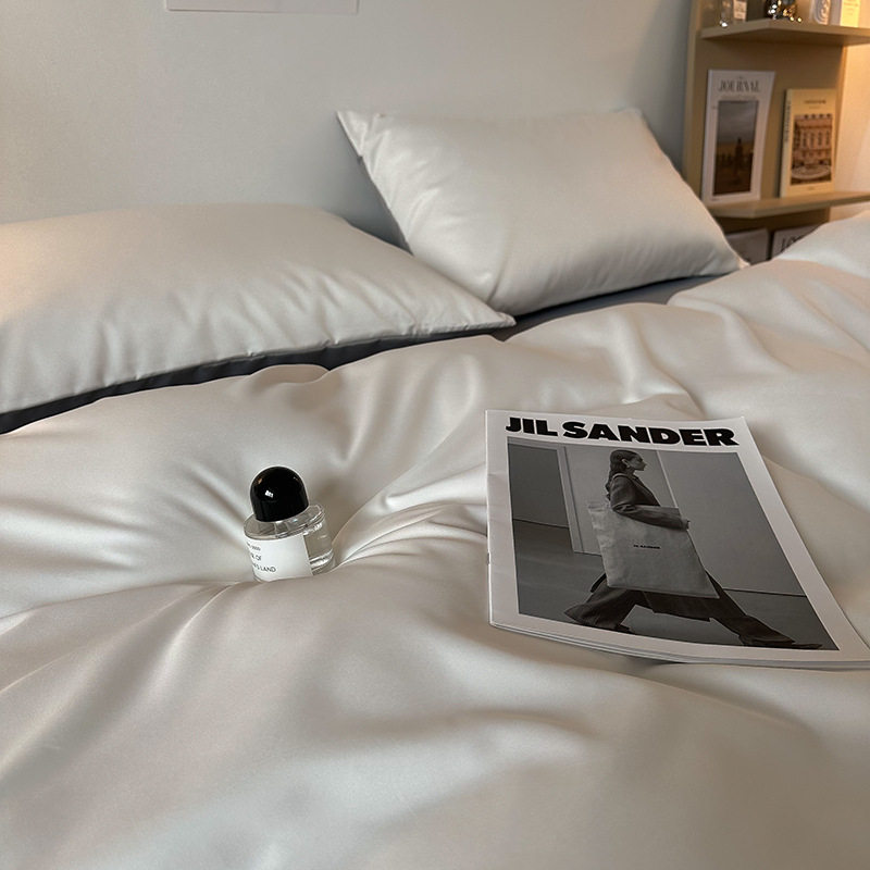 夏季轻奢水洗冰丝四件套真丝简约纯色被罩被套学生宿舍三件套床