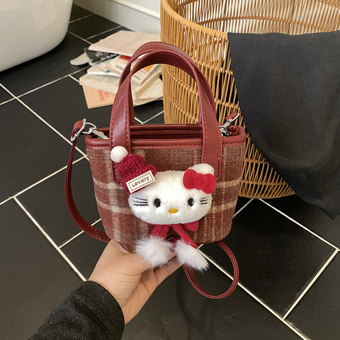 儿童包包2026新年拜年时尚女童宝宝毛呢格子手提红包小女孩斜挎包