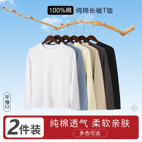 凡客依舍纯棉长袖T恤2件装春季新款休闲百搭圆领宽松舒适