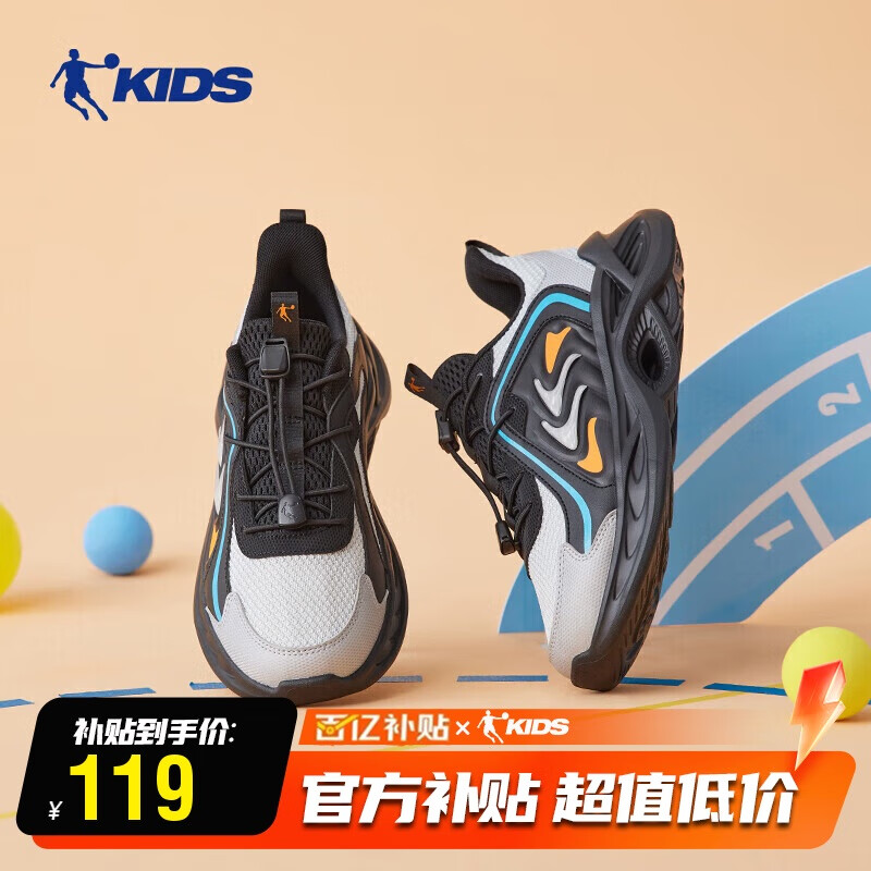 乔丹男大童跑步鞋儿童春秋季密网运动鞋子抽绳童鞋 薄纱灰/银色41
