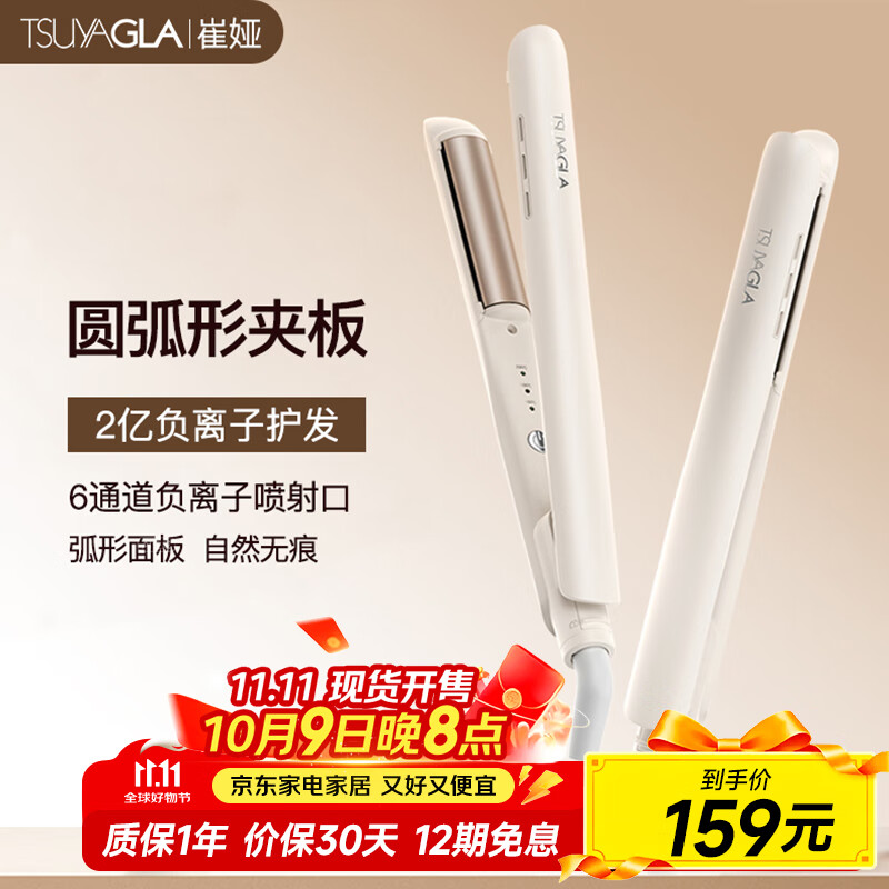 崔娅圆弧形夹板 高颅顶直发蓬松夹板 负离子卷直两用防烫直发神器生日礼物T206白色