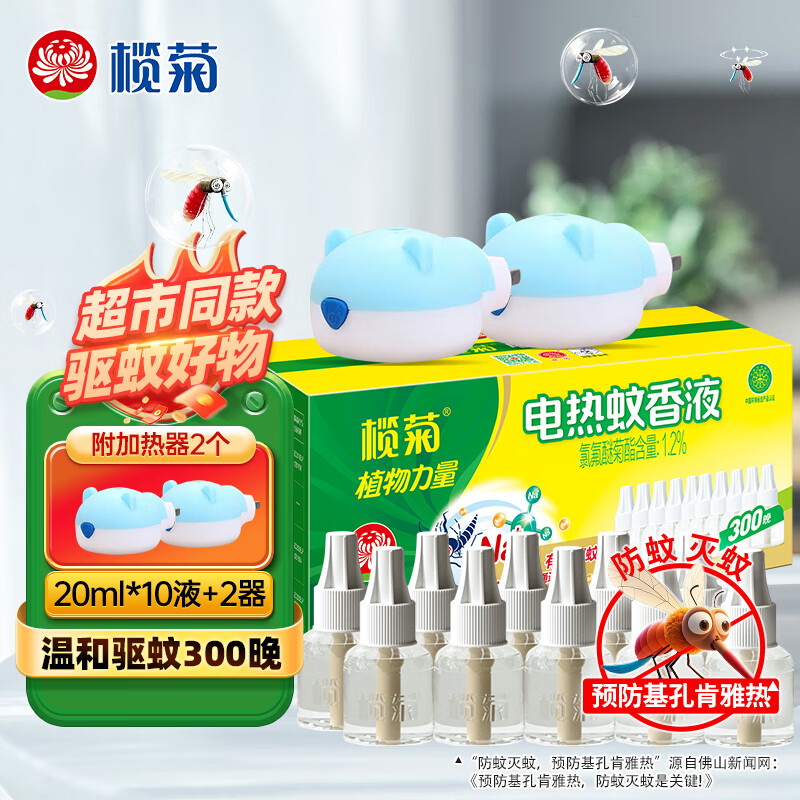 榄菊电热蚊香液无香型室内家用卧室灭蚊强效驱蚊卧室防蚊电热驱蚊液 【有效驱蚊300晚】10瓶补充液+小熊加热器*2