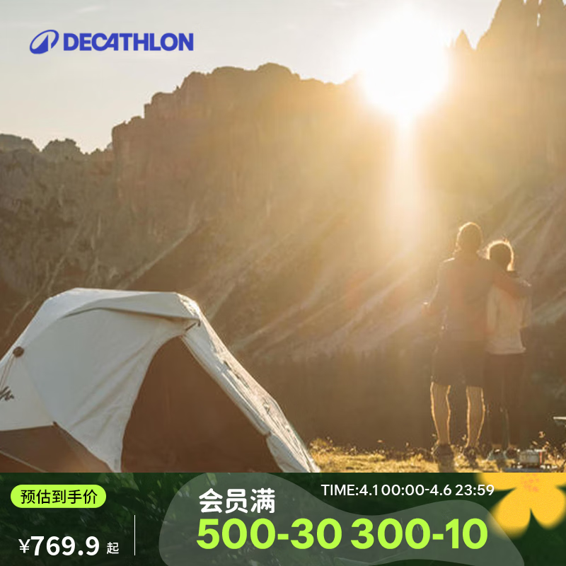 迪卡侬帐篷黑胶F&B防晒遮光排热通风防蚊露营帐篷户外野营加厚防雨野外 快开2人帐篷