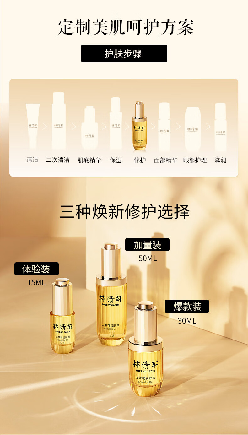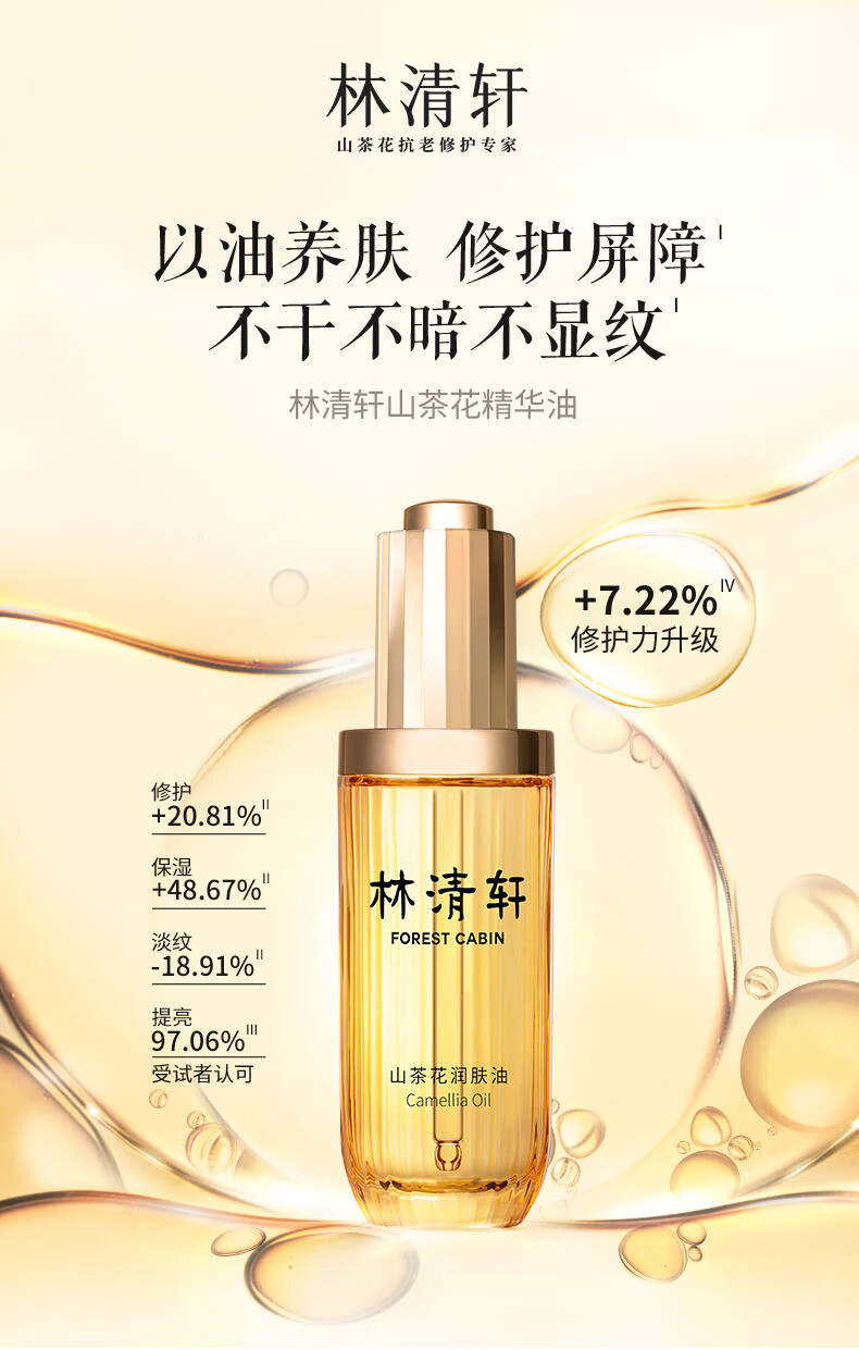 林清轩【于适同款】山茶花3.0润肤油以油养肤面部精华护肤油 3.0精华油 50ml 面部精华油
