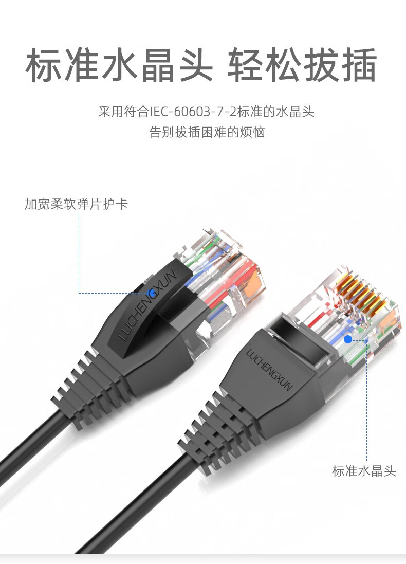 鲁诚讯纯铜芯超五类家用网线跳线成品超六类网络线路由器电脑连接线打印机网络线千兆网线电脑网络线 超五类灰色 1米