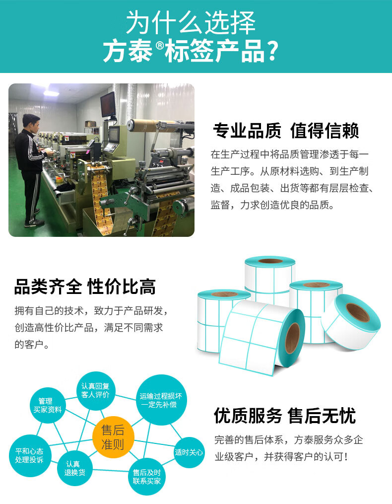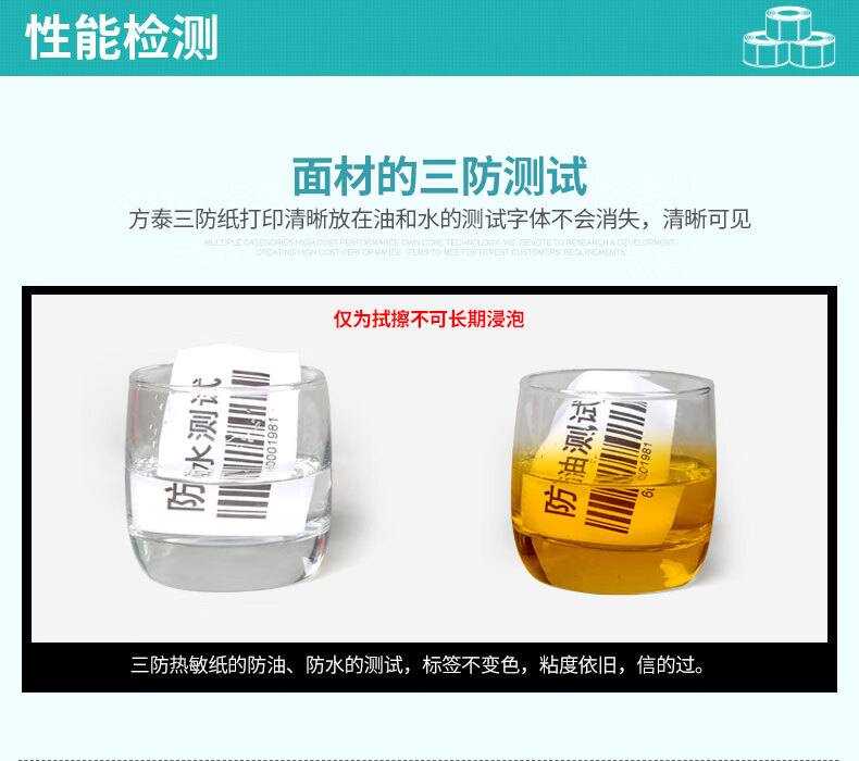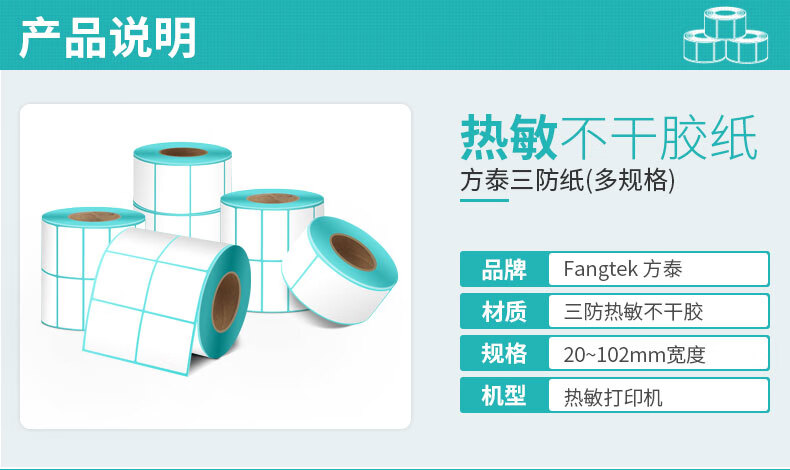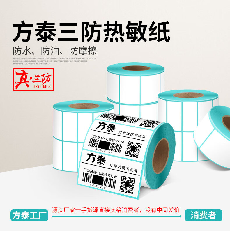 fangtek三防热敏标签纸20-100宽空白E邮宝热敏纸不干胶称纸超市价格条码打印机防水奶茶标签贴纸 三防100*60*500张