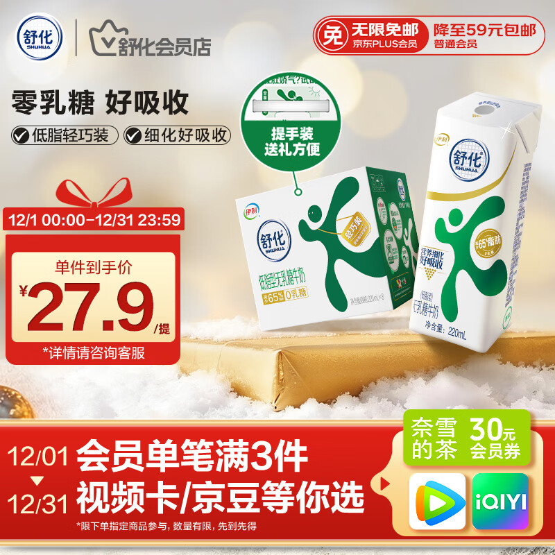 舒化0乳糖牛奶 低脂牛奶220ml*8盒 京东自营牛奶整箱 礼盒装