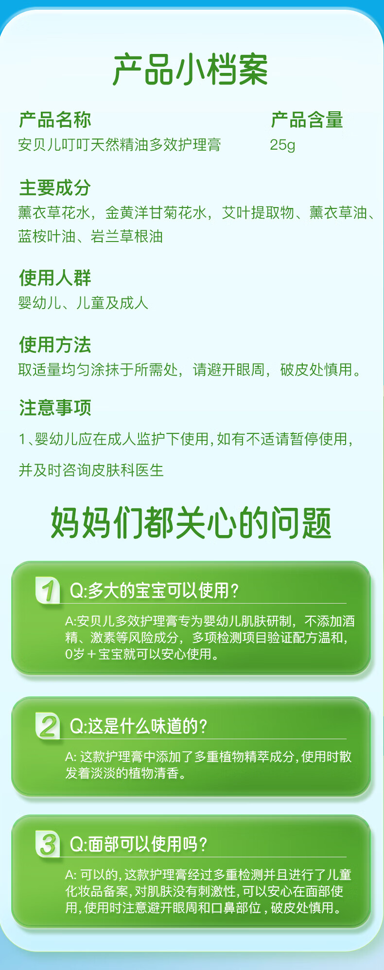 安贝儿叮叮天然精油多效护理膏止痒膏宝宝防护香膏儿童舒缓膏 多效护理膏25g【婴儿止痒膏】