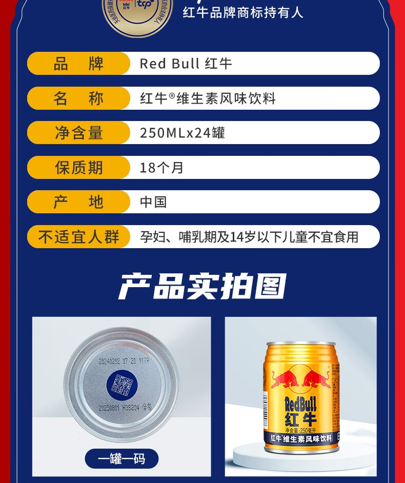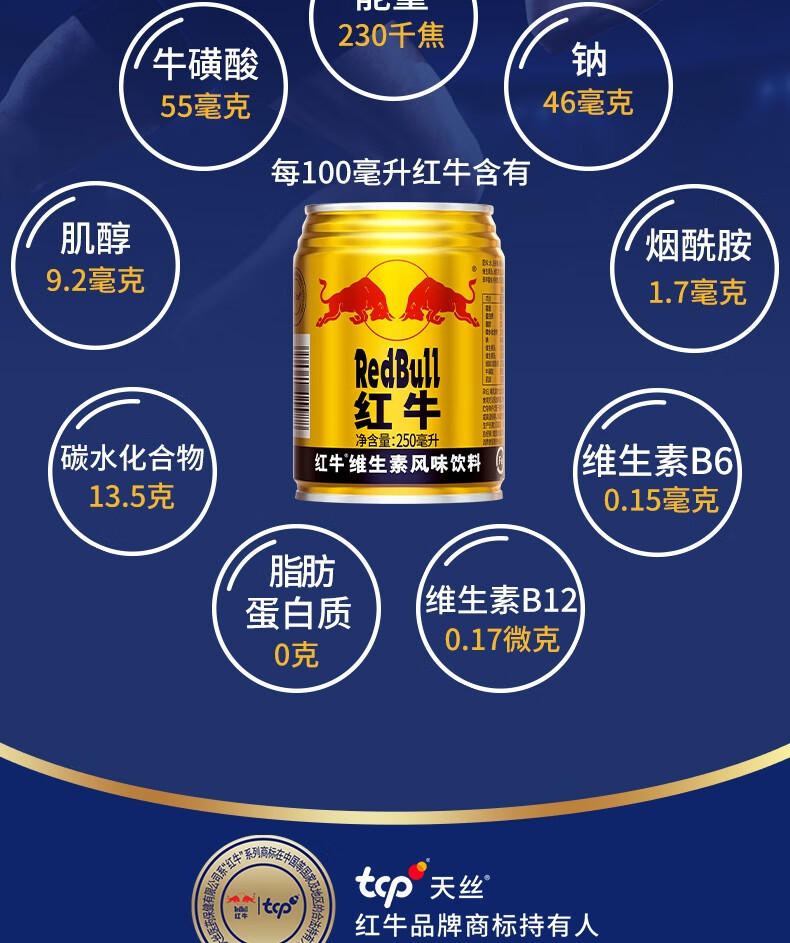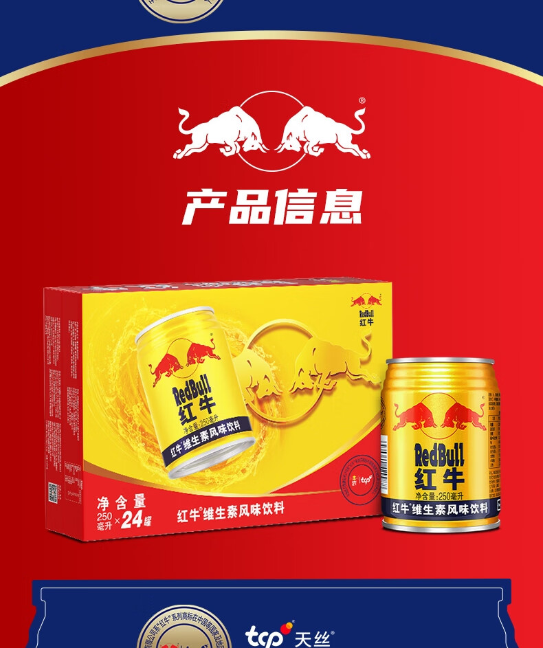 红牛【王一博同款】维生素风味饮料 250ml*24罐整箱含牛磺酸功能饮料