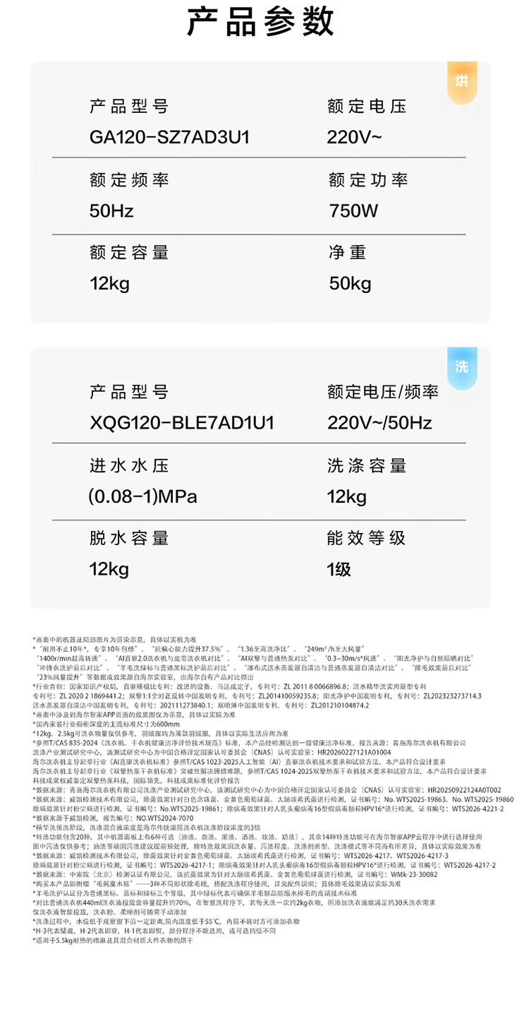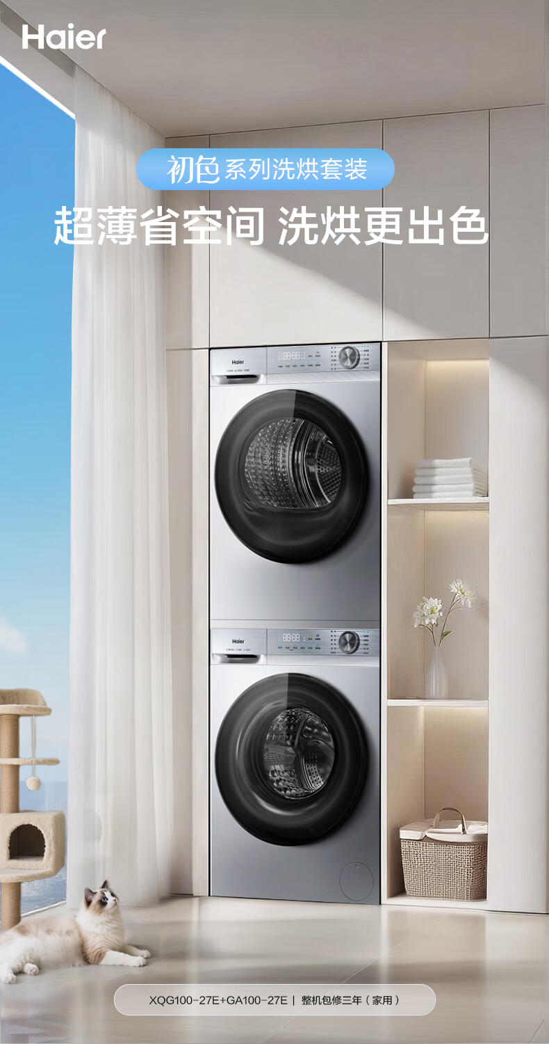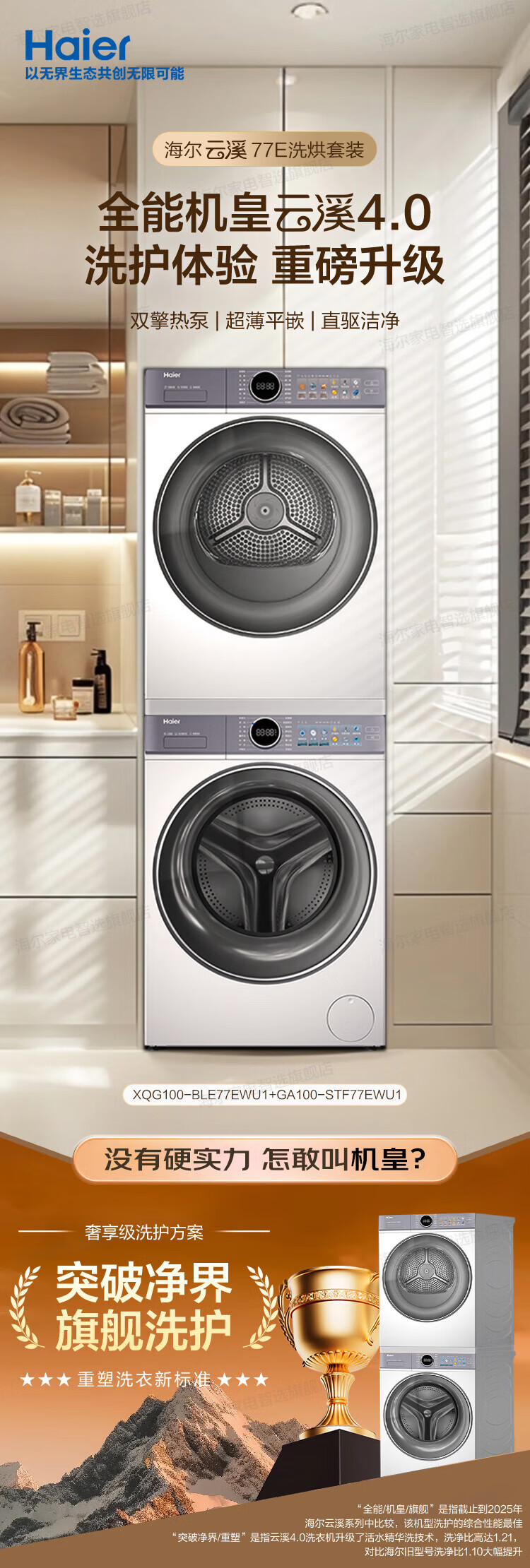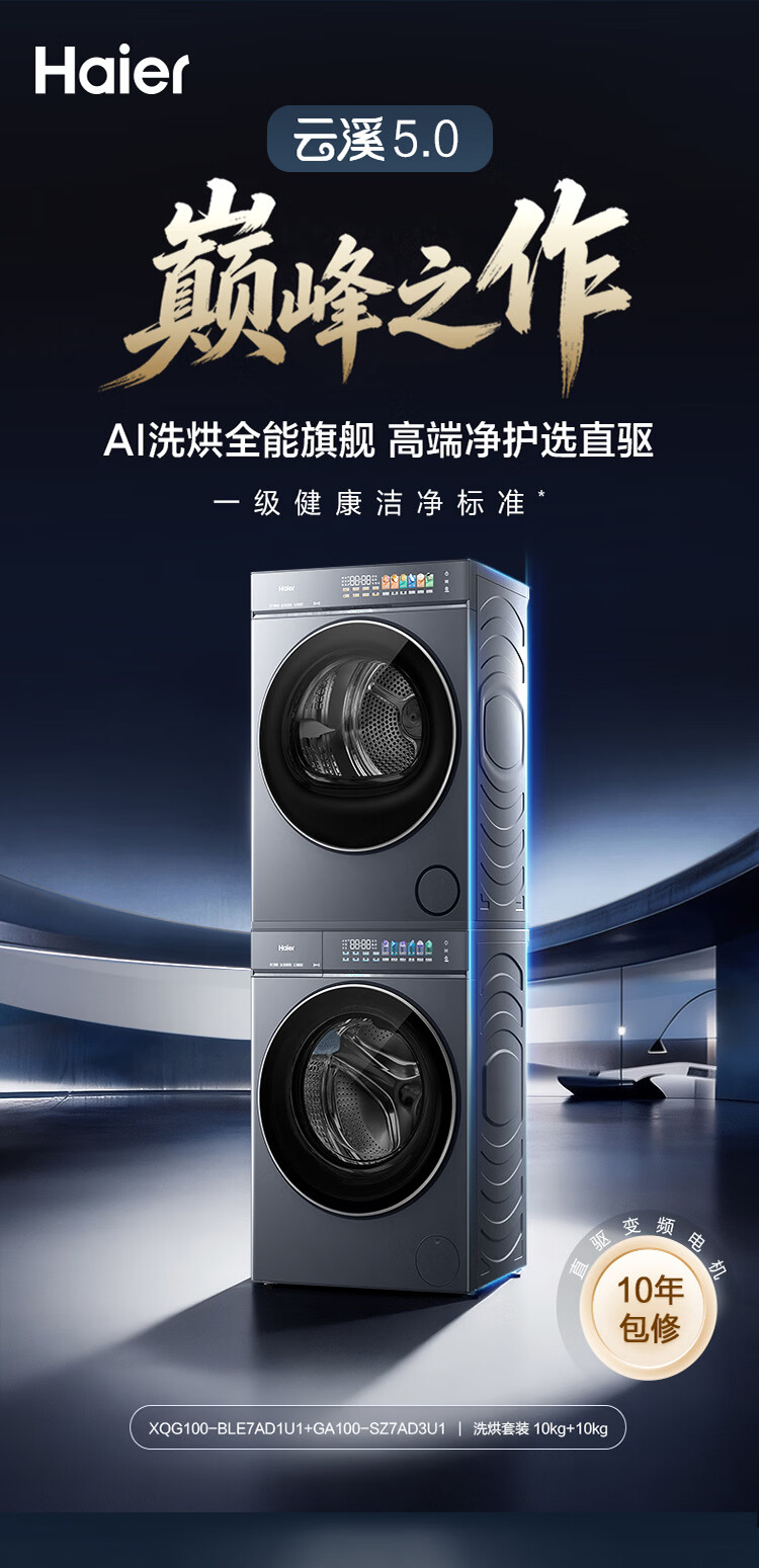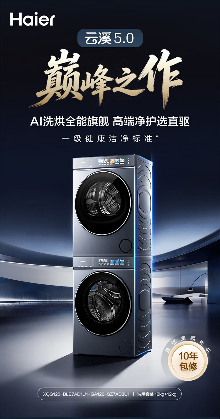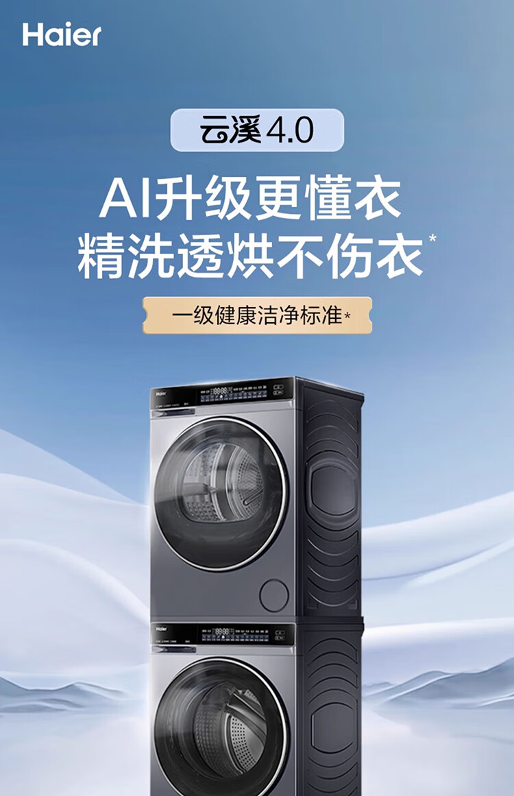 海尔(Haier)云溪5.0/4.0洗烘套装【7AD1/77E/582/27E】AI直驱精华洗洗衣机+双擎热泵烘干机 云溪4.0-77E|直驱精华洗+双擎热泵+AI语音