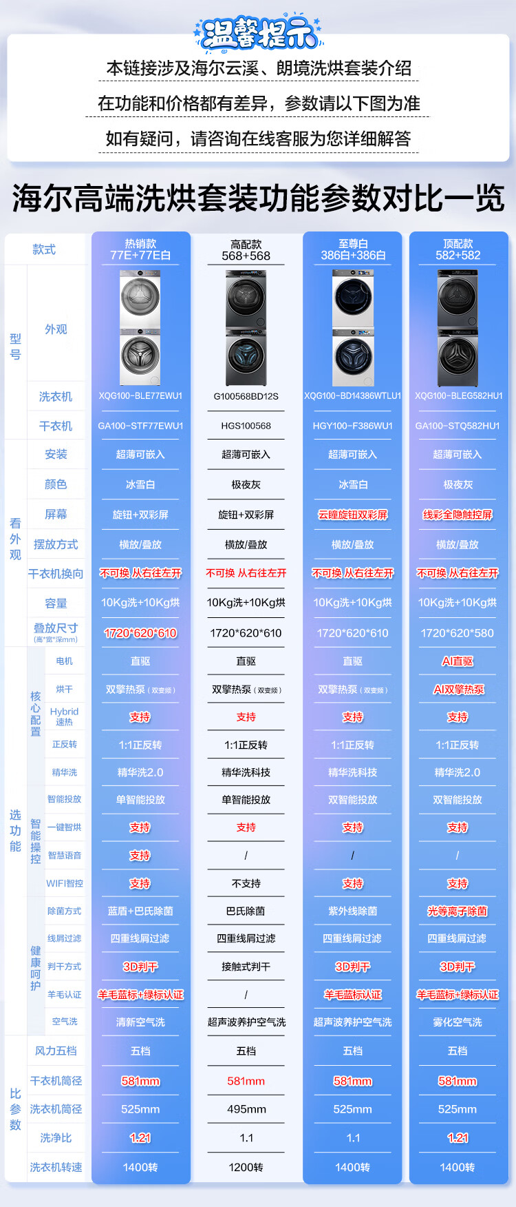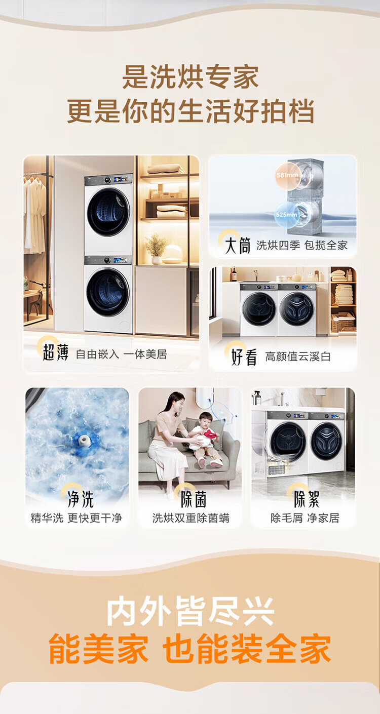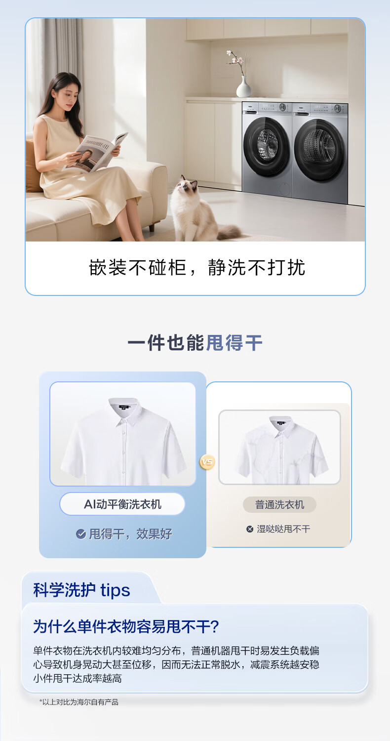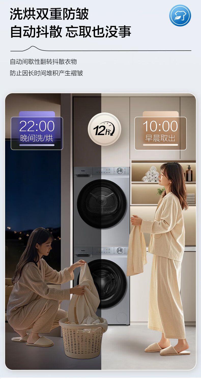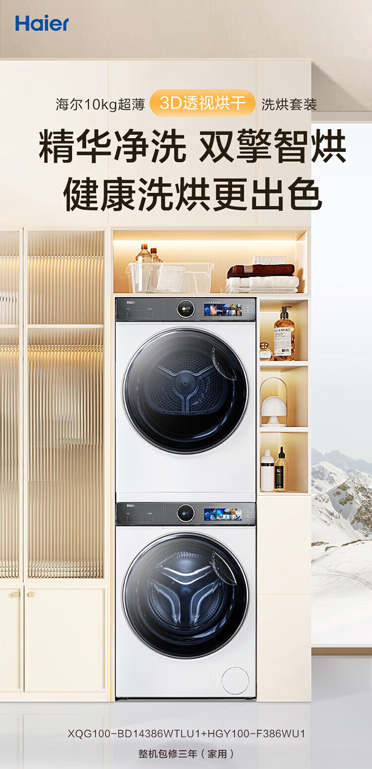 海尔(Haier)云溪5.0/4.0洗烘套装【7AD1/77E/582/27E】AI直驱精华洗洗衣机+双擎热泵烘干机 云溪4.0-77E|直驱精华洗+双擎热泵+AI语音