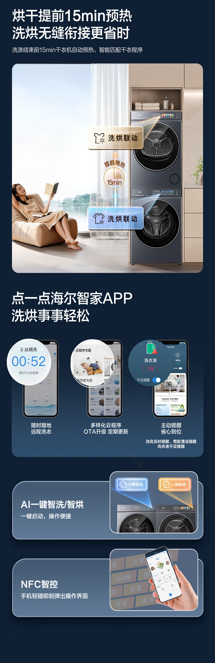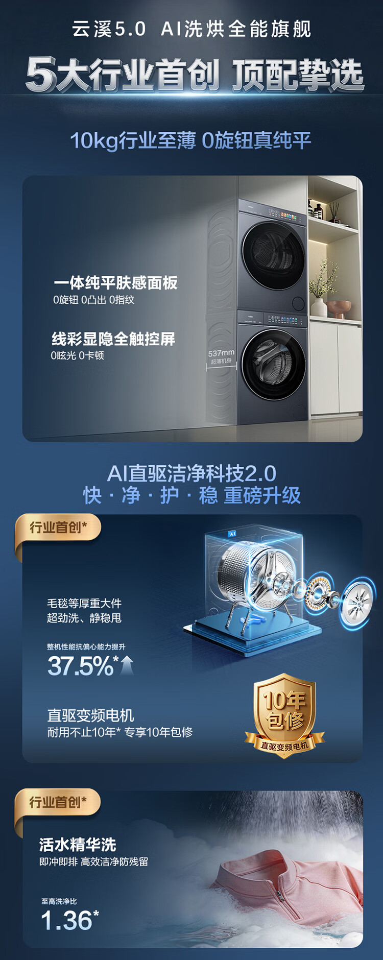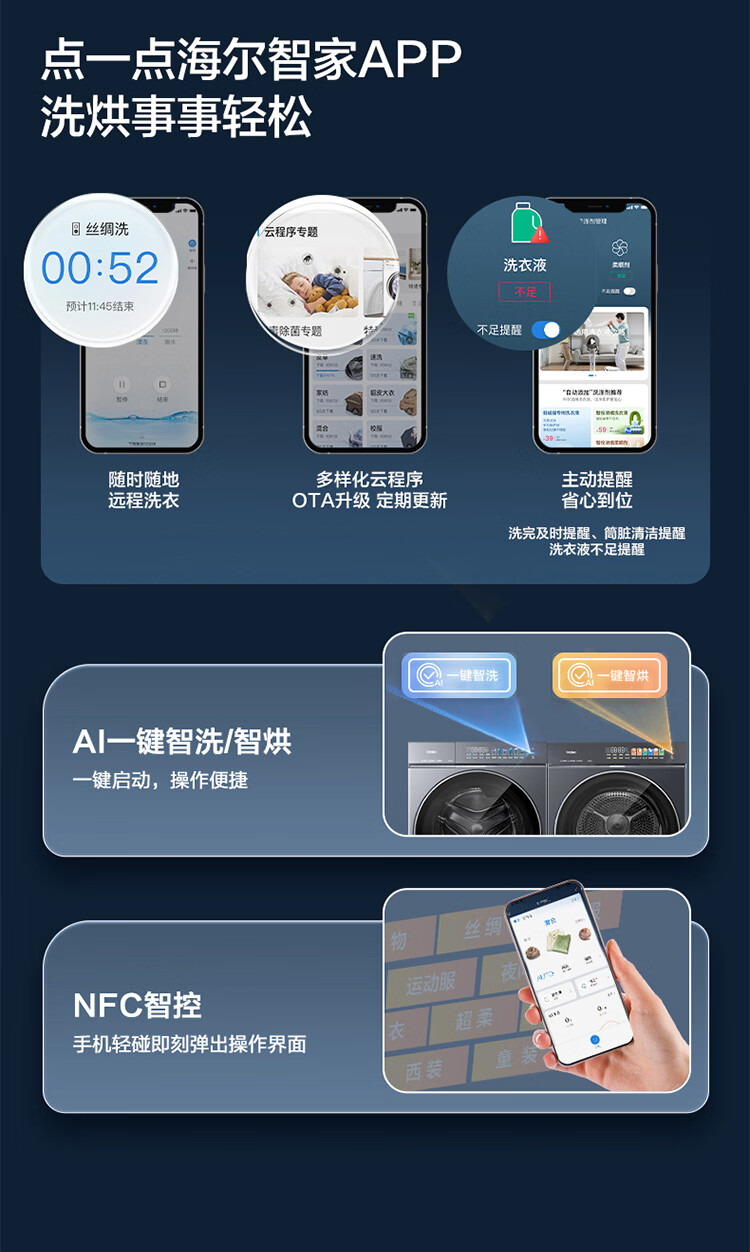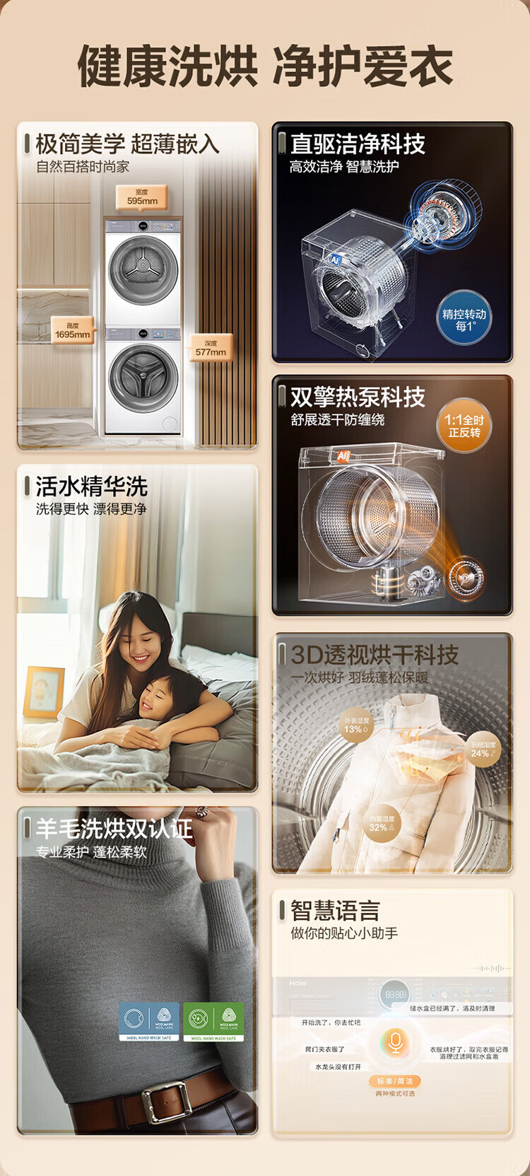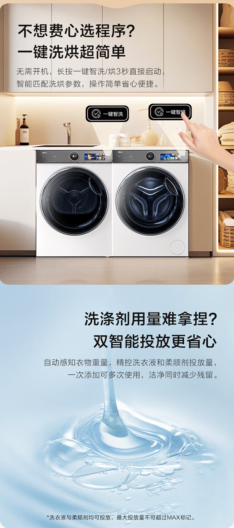 海尔(Haier)云溪5.0/4.0洗烘套装【7AD1/77E/582/27E】AI直驱精华洗洗衣机+双擎热泵烘干机 云溪4.0-77E|直驱精华洗+双擎热泵+AI语音