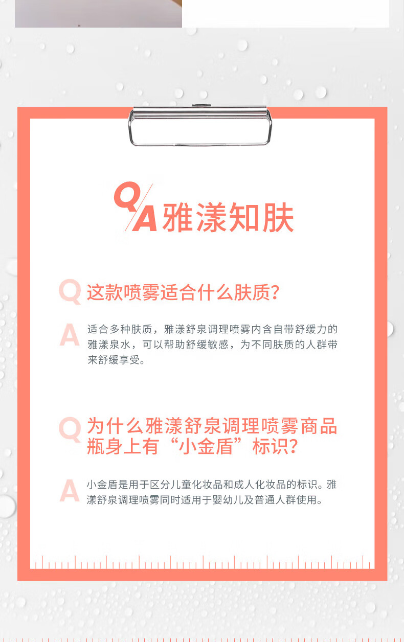 雅漾(Avene)舒泉调理喷雾150ML 补水保湿爽肤水化妆水护肤中喷
