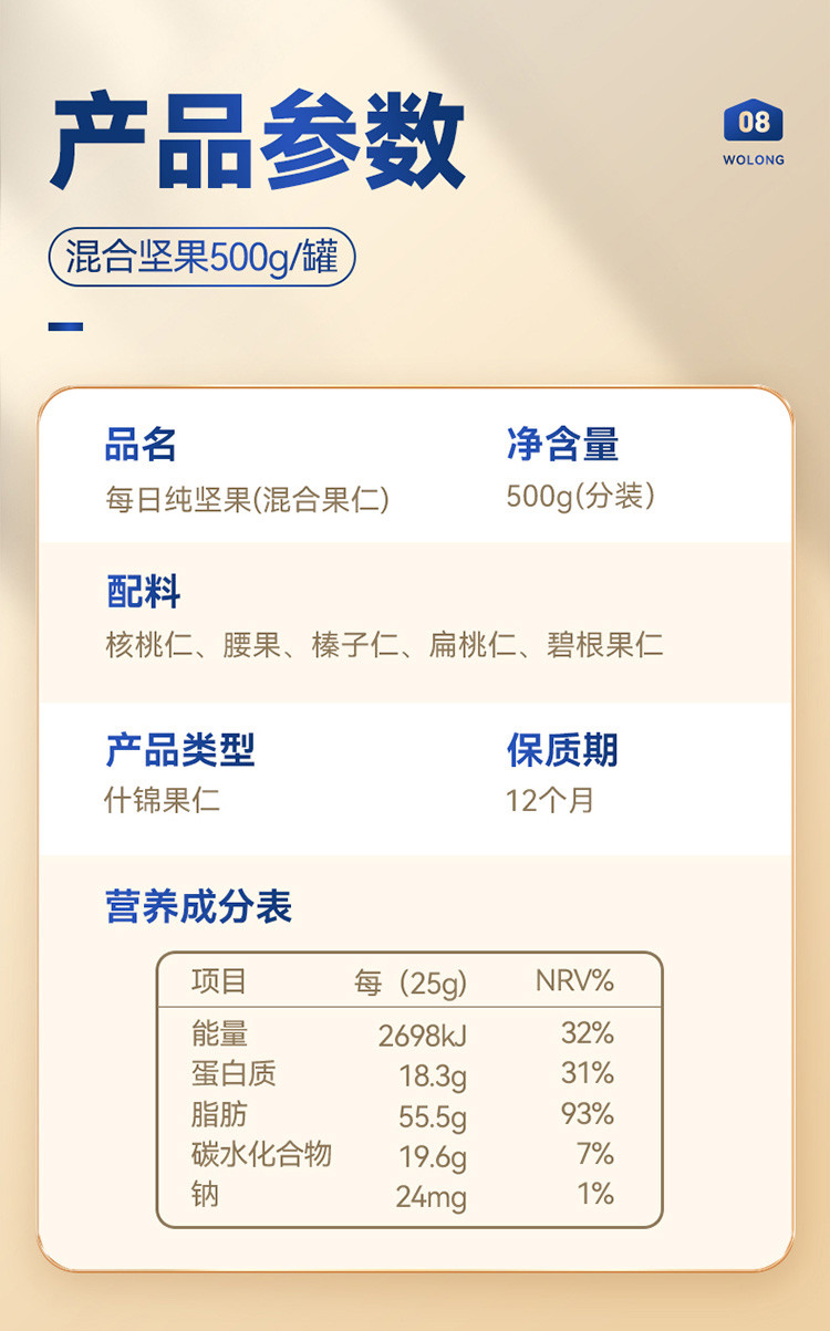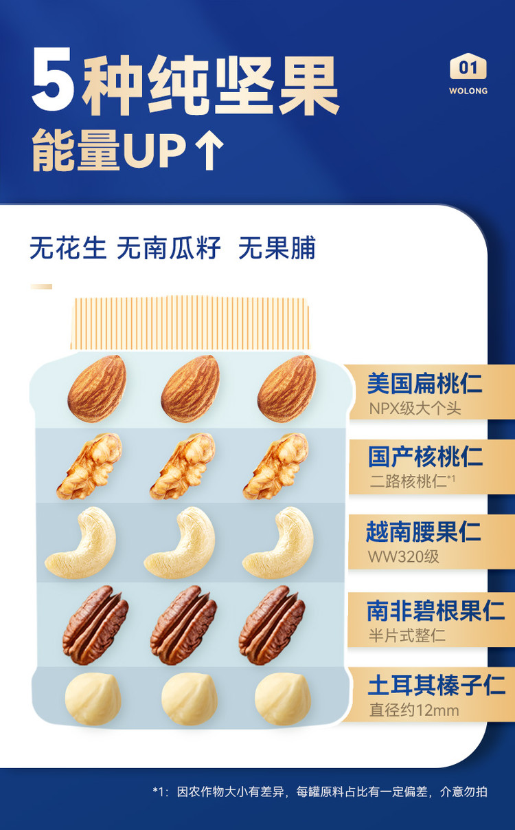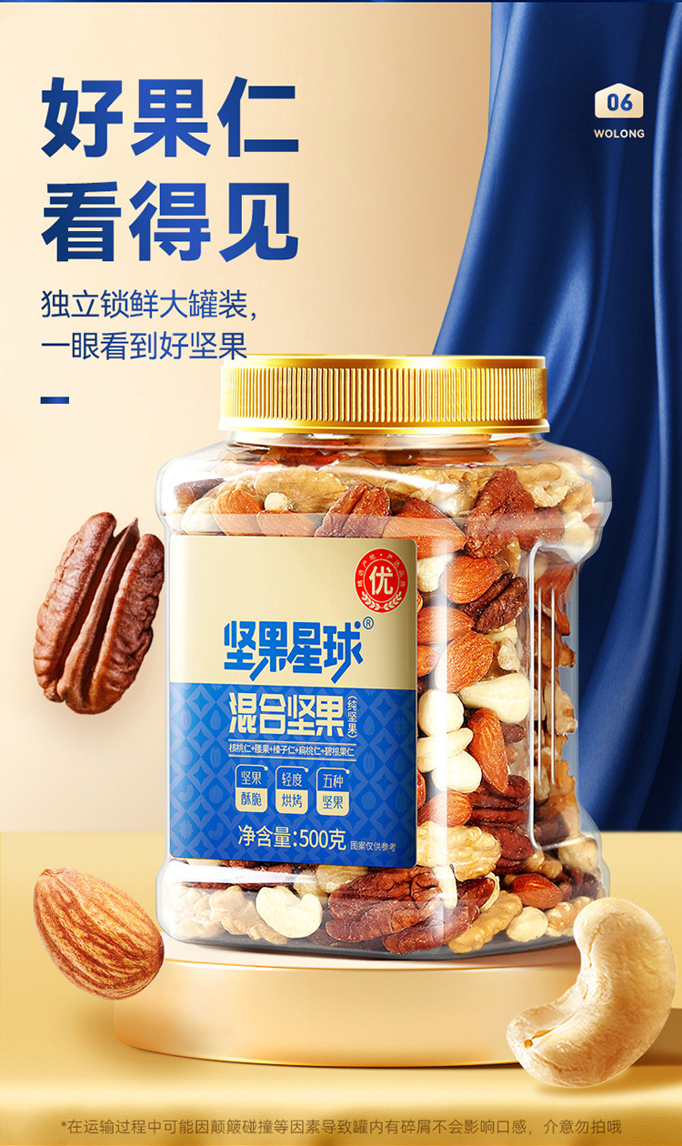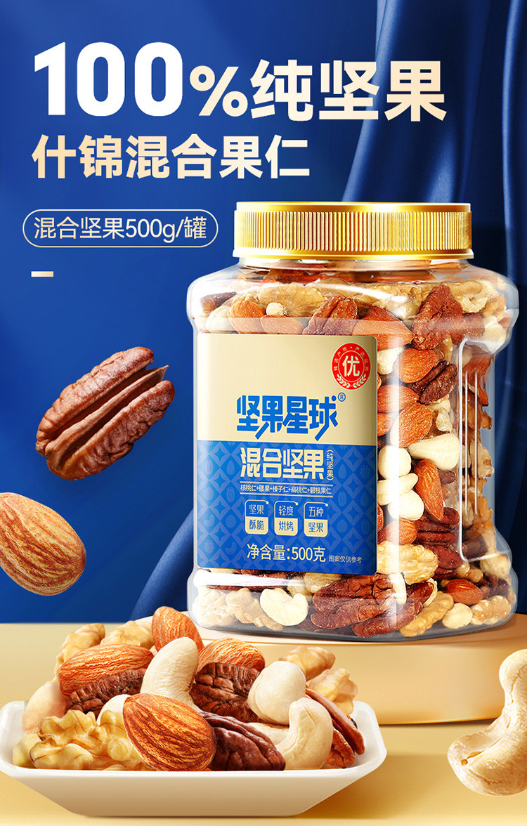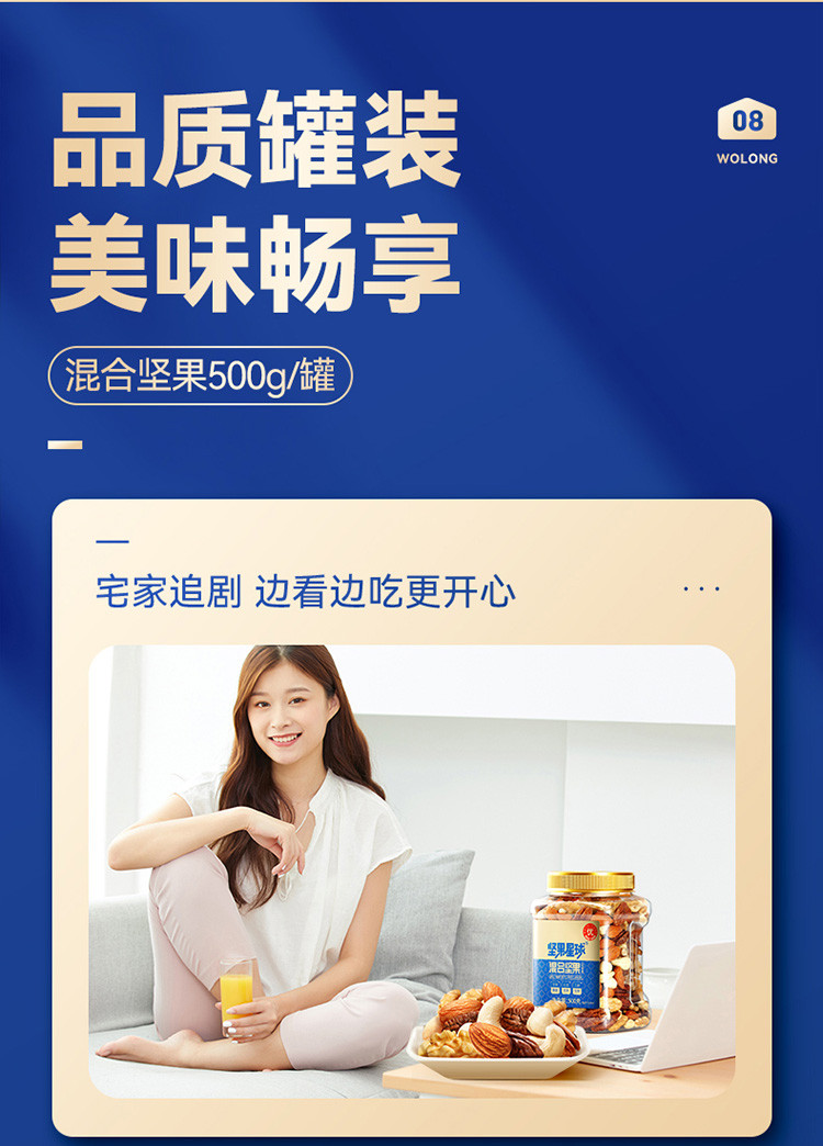 沃隆 混合果仁525g坚果罐装混合干果健康孕妇休闲零食 【售价】:¥56 下单链接: